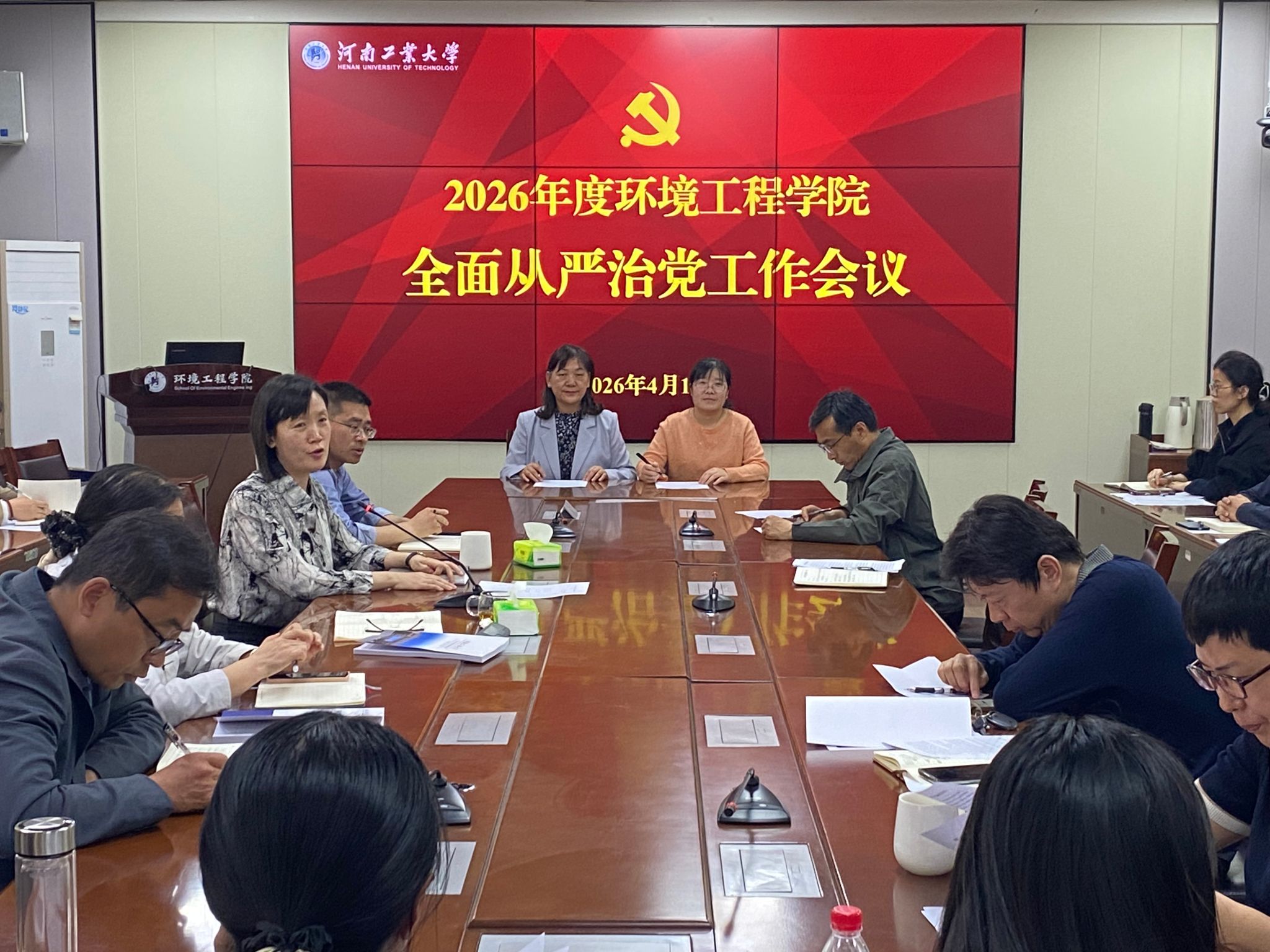 4月14日下午,环境工程学院在9237会议室召开2026年度全面从严治党工作会议。学院领导班子成员及全体教师参加会议。会议由学院党委书记宋芙晖主持。