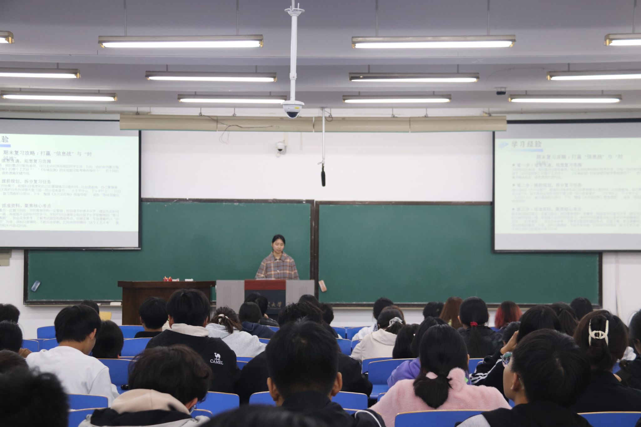 在精彩纷呈的分享环节,冯若涵首先登台。她介绍自己从大一起就积极参与各类竞赛和学生工作,坦言“困难是成长的必修课”,鼓励学弟学妹在挑战中淬炼自我。绩点高达3.96的唐露苹则系统分享了学习方法与时间管理心得,强调要构建知识网络、注重学科融合,坚持科研与实践相结合。王梦晗着重强调了英语学习和科研赛事的重要性,提倡主动学习、注重效率,并以"选择比努力更重要"激励大家把握机遇,在各类活动中锻炼能力、收获成长。