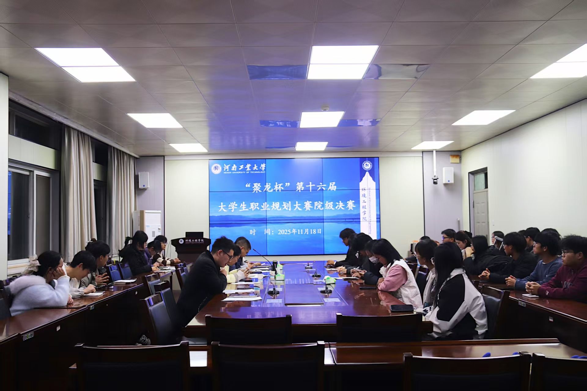 为深化学生职业规划意识,助力学生明晰发展方向,为以后精彩职业人生打下坚实的基础,11月18日晚,环境工程学院在9237会议室举办“聚龙杯”第十六届大学生职业规划大赛院级选拔赛。环境工程学院党委副书记杨计国、学院生态与环境修复教学科研中心主任王亚利和全体辅导员担任评委。