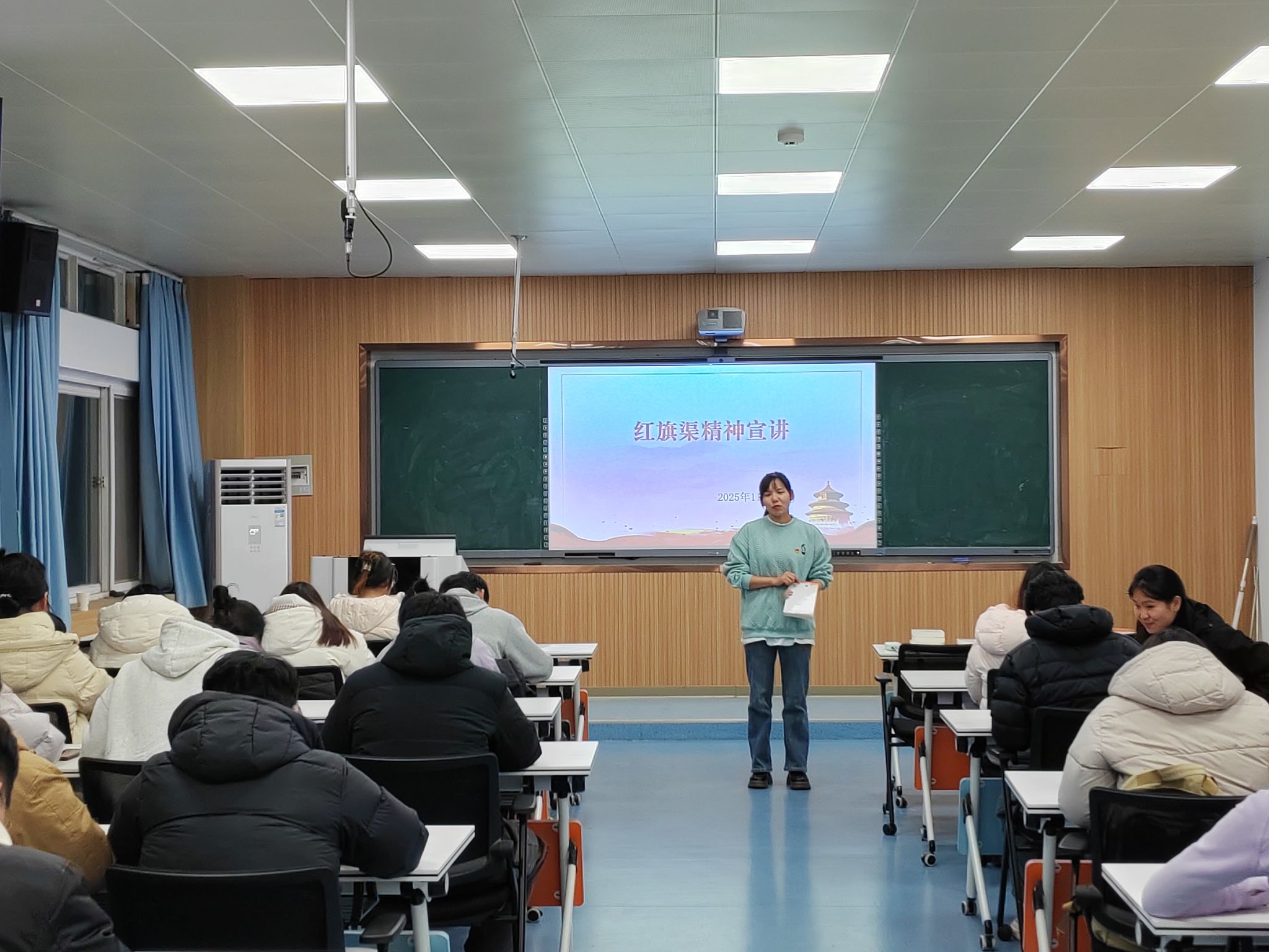 为引导广大入党积极分子从中国共产党人精神谱系中汲取奋进力量、筑牢信仰根基,11月28日晚,环境工程学院团委书记李芳芳以“天河铸魂映初心 青春逐光向党行”为题,面向学院全体入党积极分子开展了一场主题鲜明、内容生动的红旗渠精神宣讲会。宣讲围绕红旗渠精神的时代内涵与实践价值展开,激励青年学子在红色精神滋养中坚定理想信念,自觉投身中国特色社会主义伟大实践。