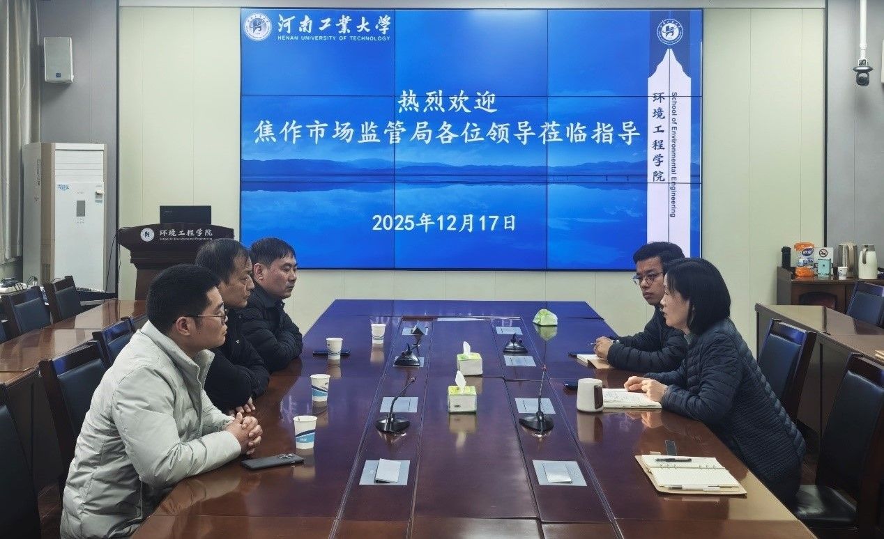 12月17日下午,焦作市中站区市场监督管理局副局长刘根旺、河南云山新材料有限公司总经理崔军会和刘文轩工程师到环境工程学院座谈交流。环境工程学院院长万东锦、高级工程师梁家伟和宋勇军博士给予热情接待并参与座谈。