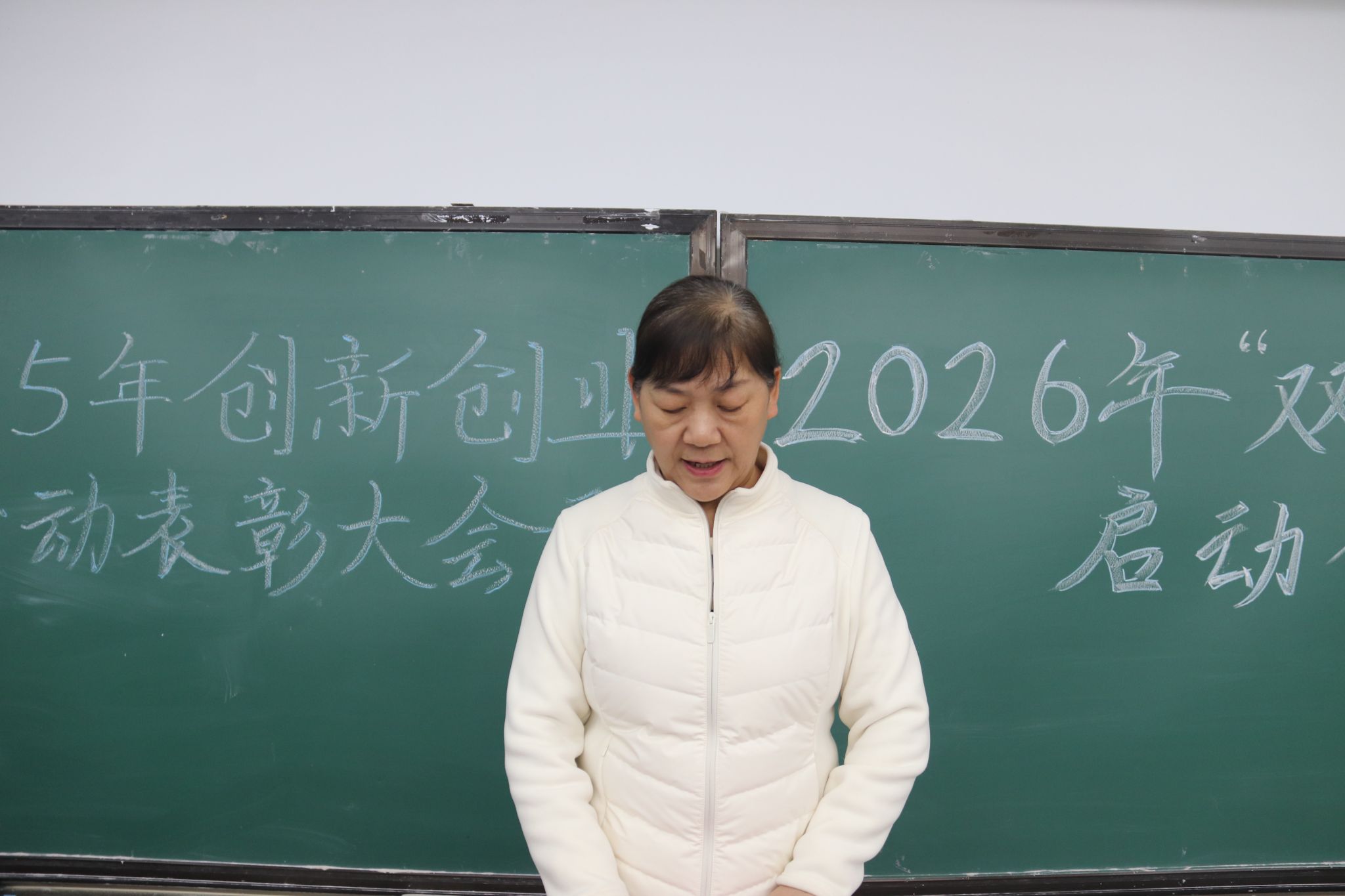 会议最后,学院院长万东锦作总结发言。她对受表彰的教师与团队表示祝贺和感谢。强调了学院对创新创业竞赛的高度重视和大力支持,鼓励同学们积极投身到各项科研创新活动中,在科研学术实践中学习科学,追求真理,奋发成才。最后宣布学院2026年“双创”赛事正式启动,预祝学院在2026年创新创业竞赛中取得优异成绩。