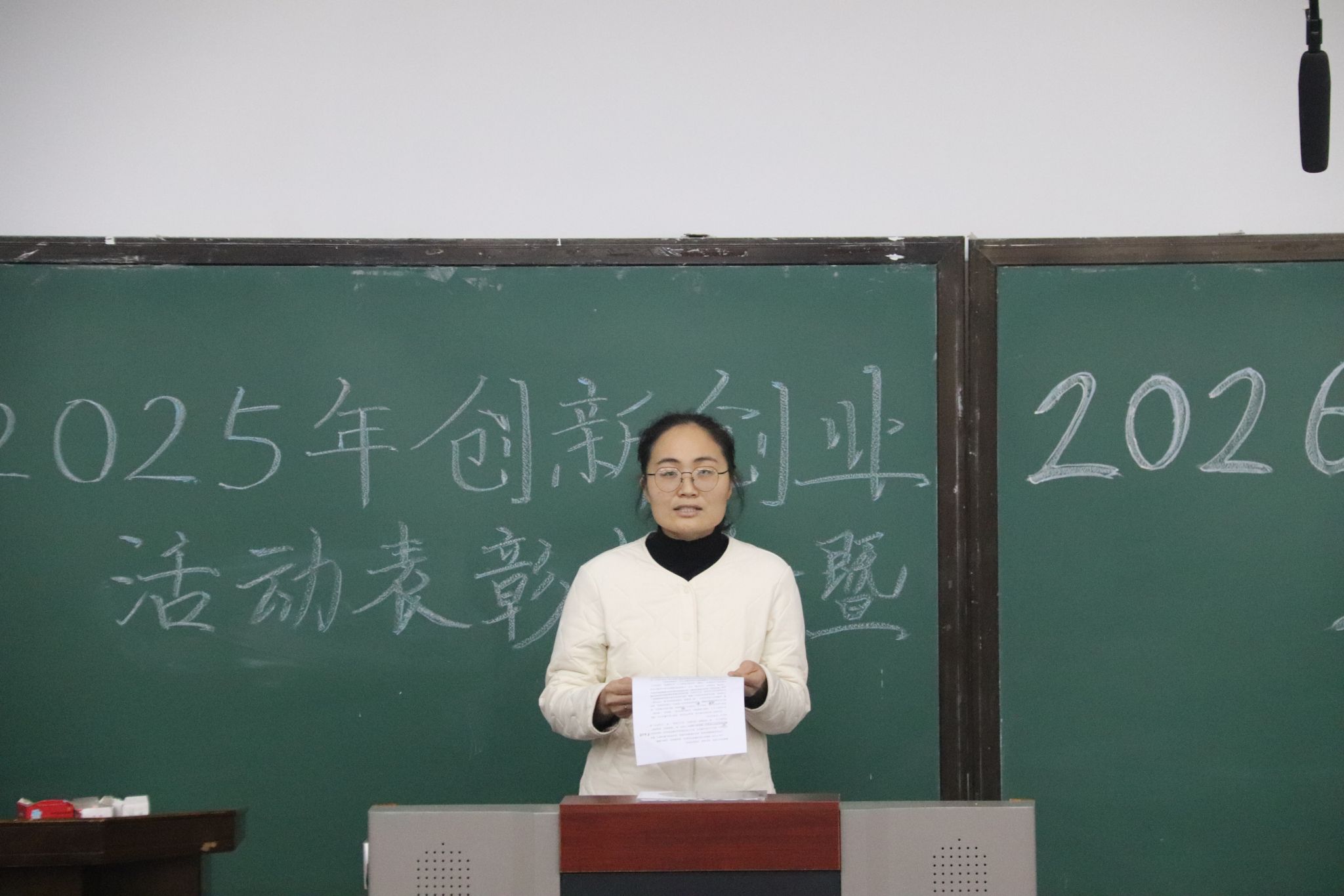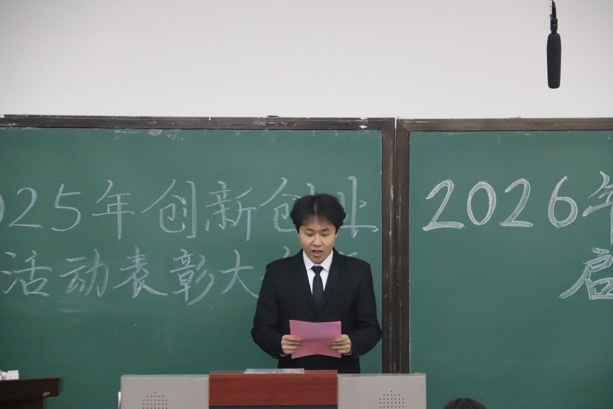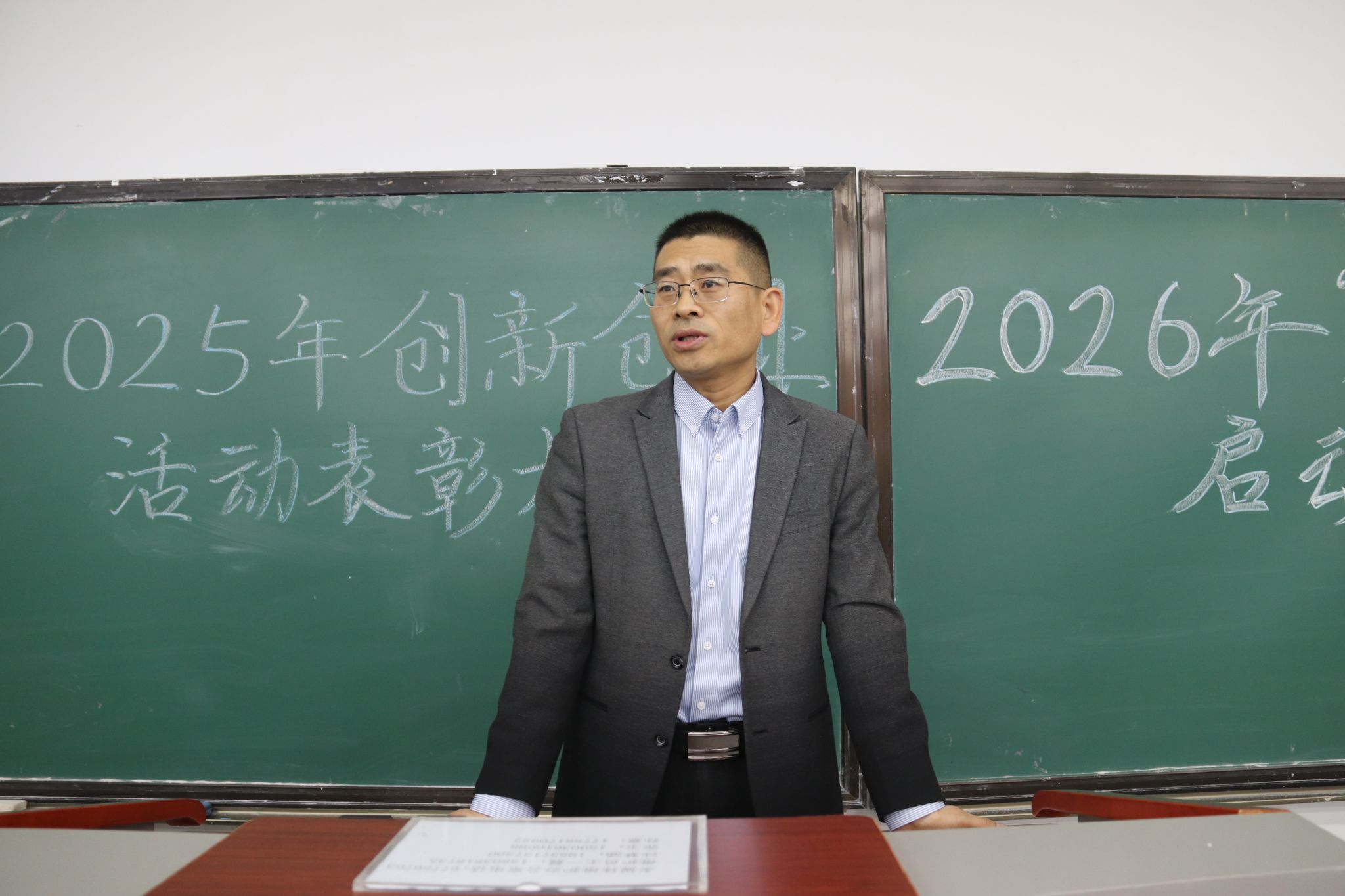 12月30日下午,环境工程学院在4322隆重举行“2025年创新创业活动表彰大会暨2026年‘双创’赛事启动仪式”。学院领导班子、科技创新优秀指导教师、各团队代表以及2025级全体学生参加了会议。会议由学院团委书记李芳芳主持。
