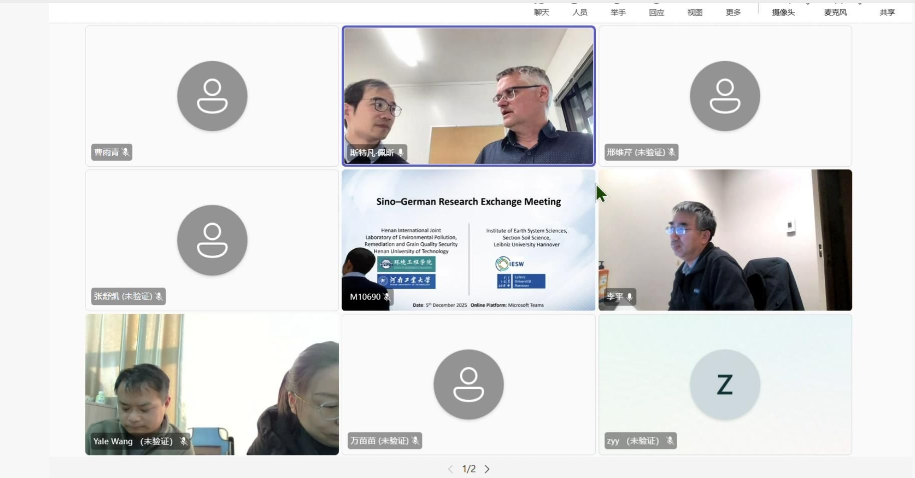 2025年12月5日,河南工业大学环境工程学院与德国基尔大学土壤科学与植物营养研究所成功举办线上学术交流会,会议通过Microsoft Teams平台举行。本次会议由我院黄新君博士主持,德国基尔大学土壤科学与植物营养研究所所长、国际知名土壤物理学家Stephan Peth教授,我院生态修复中心主任李立平教授,以及双方研究团队的师生代表共同参与。