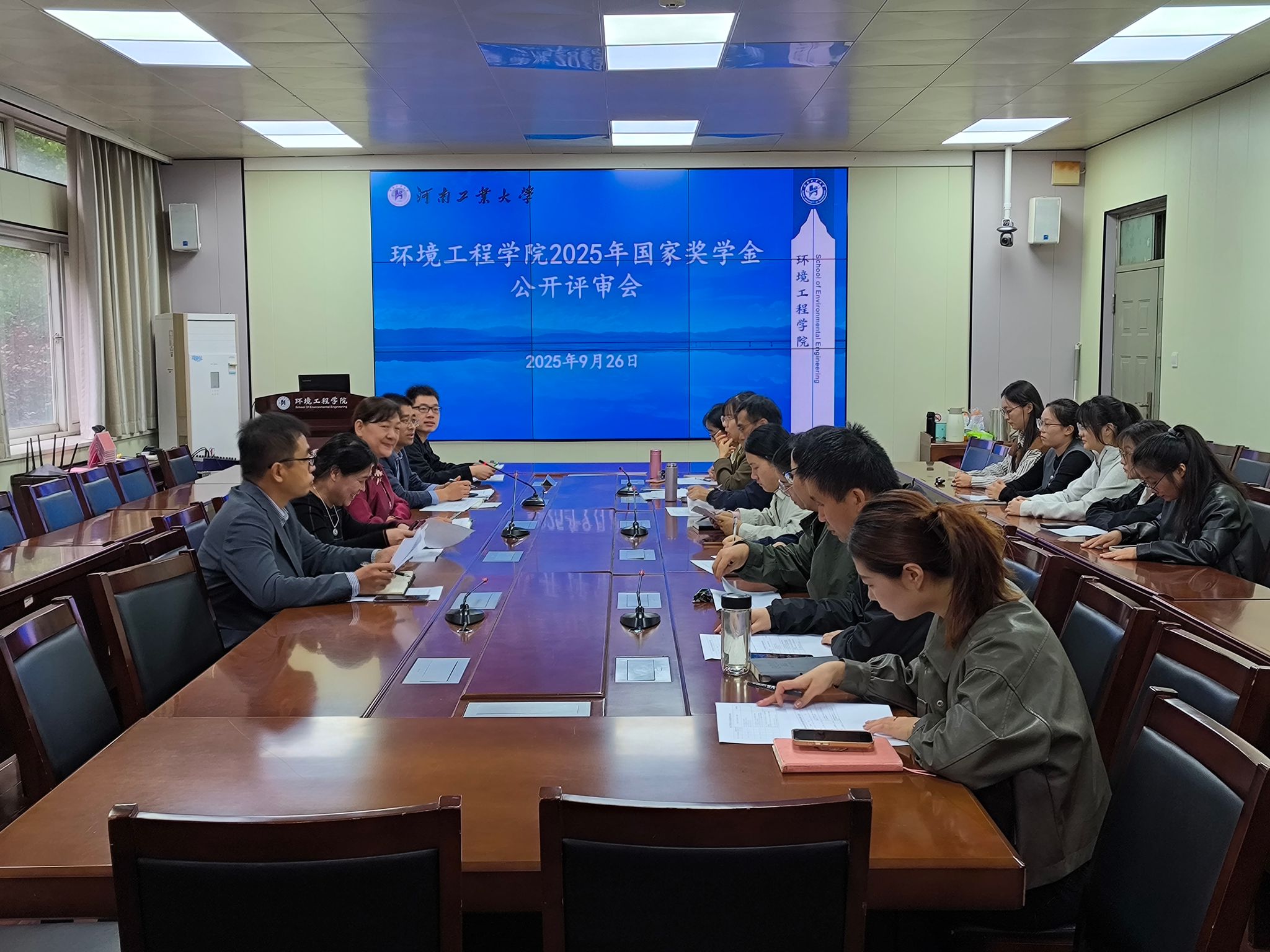 根据学校国家奖学金评审工作安排,9月26日上午,环境工程学院在9237会议室召开了国家奖学金公开评审会。学院党委书记宋芙晖、党委副书记兼本科生评审工作组组长杨计国、副院长兼研究生评审工作组组长张良波、副院长陈寒玉、各中心主任、全体辅导员和学生代表参加了会议。
