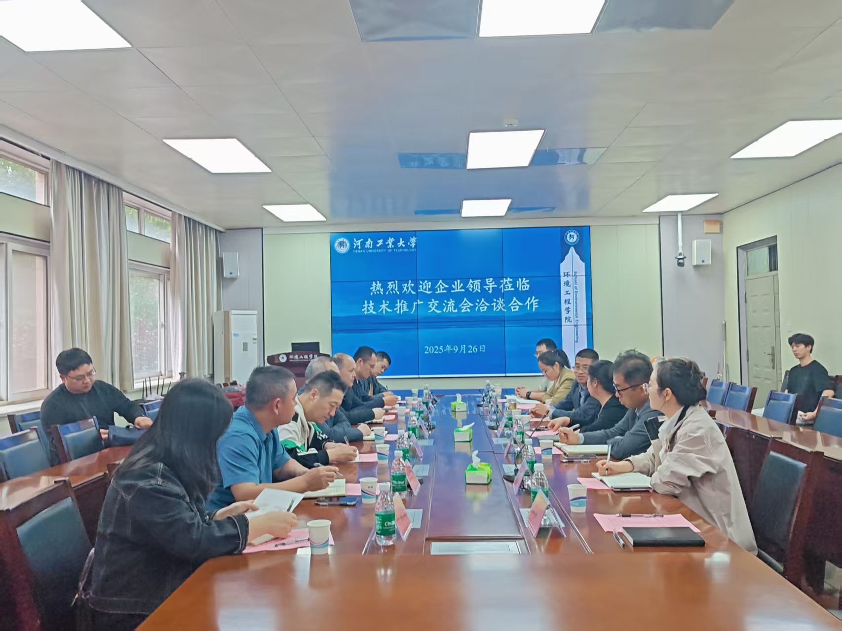 9月26日上午,多家企业应约走进环境工程学院开展技术交流洽谈合作。基于前期的沟通和科研基础,平顶山东方炭素有限公司董事长杨遂运带领公司技术人员、河南钢铁缔澄环保公司污水部经理郜小晶、河南澜溪环保科技公司总经理左小伟和技术总监刘佳佳等一行到环境工程学院开展技术交流洽谈合作。学院党委副书记杨计国、副院长陈寒玉、副院长张良波和部分教师代表参加本次交流活动并进行座谈。会议由陈寒玉主持。
