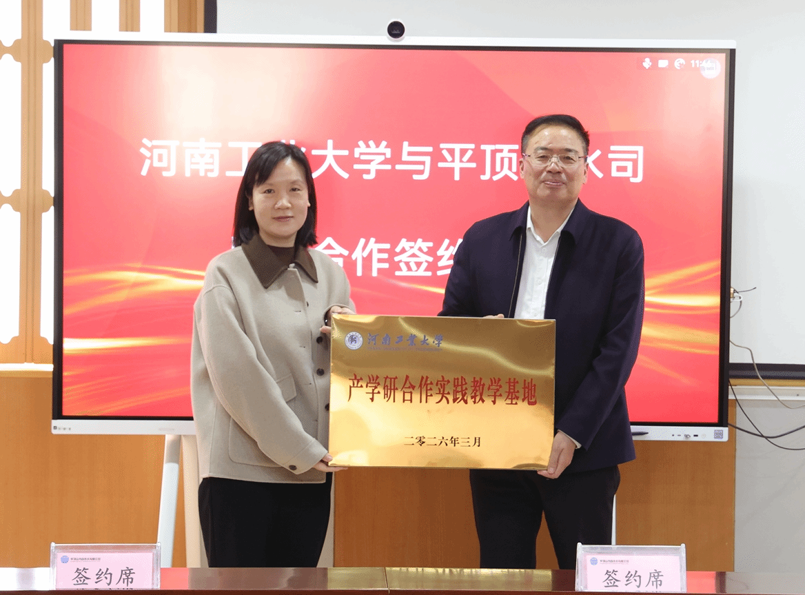 活动伊始,毕志伟首先详细介绍了平顶山市自来水有限公司的发展历程、技术优势及未来发展规划,强调了公司在水质科学与技术领域的创新实践和重要贡献。随后,宋芙晖书记全面介绍了河南工业大学及其环境工程学院的历史沿革、师资力量、科研特色以及在学生培养方面的成就,表达了希望通过此次合作进一步提升人才培养质量的愿望。接着,万东锦院长深入讲解了环境工程和水质科学与技术两个专业的建设情况,分享了学院在科研和学科发展方面取得的成绩,并展望了双方合作的美好前景。梁红霞副总经理则着重介绍了公司业务的发展规划以及如何通过校企合作促进科研成果转化的具体思路,提出了打造全省校企合作新标杆的目标。签约仪式上,双方代表分别签订了《产学研合作教学科研基地协议》和《现代产业学院共建协议》,并共同为产学研合作教学科研基地揭牌。